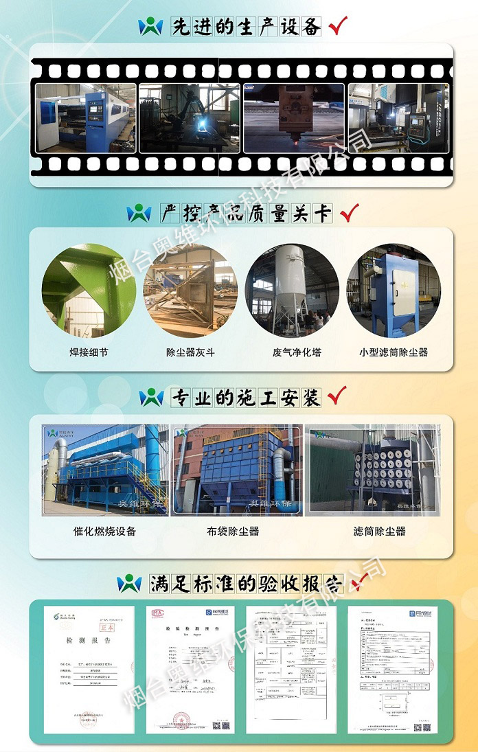 訂單多,發(fā)貨忙!這都離不開奧維環(huán)保新老客戶的支持與厚愛??蛻羰瞧髽I(yè)發(fā)展的源動力,客戶的滿意是企業(yè)持續(xù)發(fā)展的基礎,是企業(yè)取得長期成功的必要條件。為此奧維環(huán)保公司將一如既往、不忘初心地砥礪前行,堅持為客戶打造更高品質的除塵設備,加大質量控制,認真生產調試每一套設備,在保證出發(fā)貨的同時保證好質量。奧維環(huán)保成立于2013年,位于煙臺市開發(fā)區(qū)是一家集科研、工程設計、制造施工、安裝調試直至驗收合格的一條龍服務的高科技技術型企業(yè)。長期致力于為工業(yè)粉塵治理、工業(yè)廢氣治理、Vocs治理、鍋爐脫硫脫硝等環(huán)境治理領域提供科學合理的解決方案,給用戶提供整體最佳的解決放按。我公司可根據(jù)用戶現(xiàn)場工況進行方案設計,出具科學合理的除塵及廢氣解決方案。詳情聯(lián)系15564537088.
