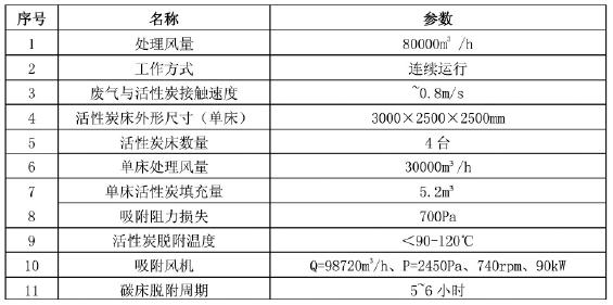 表 1 活性炭設(shè)備選型(單臺設(shè)備)